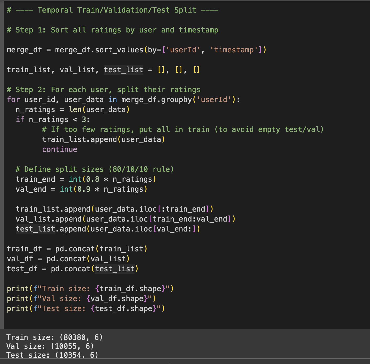 Validate and test on later ratings.