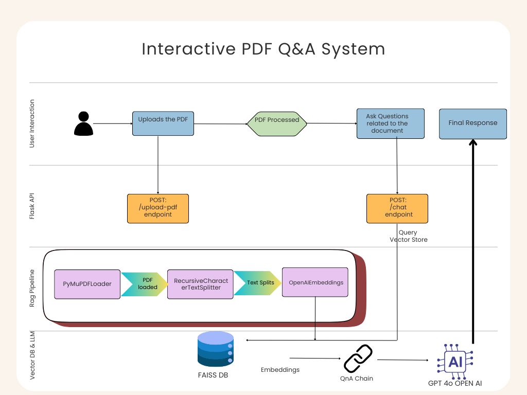 PyMuPDFLoader → Extracts text and metadata from PDFs.